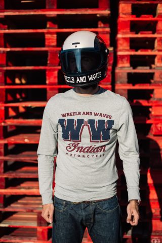 Indian Motorcycle and Wheels & Waves have collaborated on a lineup of limited edition apparel and Hedon helmets to celebrate the return of Wheels & Waves and three special anniversaries. The year 2021 not only sees the welcome return of the event to the calendar, it also marks the 120th anniversary since the establishment of Indian Motorcycles in 1901. Wheels & Waves also hits the significant milestone of 10 years since its inaugural edition and sees Indian Motorcycle return as headline sponsor of Wheels & Waves for the 5th year, continuing a 6 year partnership.