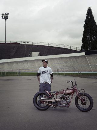 In the middle of the build, Danny had the idea to photograph the bike on the Offene Rennbahn Oerlikon bicycle track in Zürich, Switzerland which was built over 100 years ago and had also hosted flat track races in 1920.