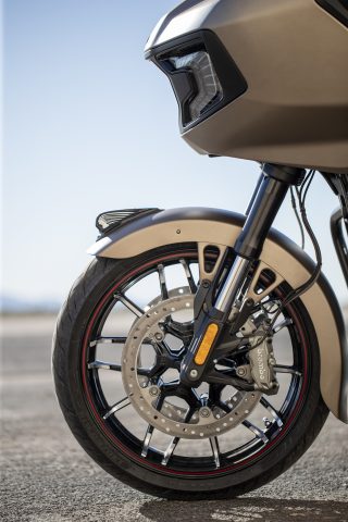 The Challenger features all the premium touring amenities riders expect from Indian Motorcycle, including electronic cruise control, full LED lighting, a long-haul seat, ABS, keyless ignition, and weatherproof saddlebags with over 68 litres of storage space. In addition, a modern and aggressively styled chassis-mounted fairing sits over the Challenger’s inverted front suspension. This, combined with the bike’s lightweight cast aluminium frame and hydraulically adjustable FOX® rear shock, delivers unrivalled handling and rock-solid stability.
