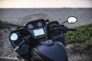For an added measure of comfort over longer hauls there’s the Indian Challenger Tour Collection, including a 406mm (16-inch) windshield, quick release passenger sissy bar, passenger backrest and passenger floorboards, an extended reach seat, rider backrest pad, infinite highway pegs and pinnacle heel shifter. Riders can also upgrade the Indian Challenger’s audio experience with the PowerBand Audio Plus system, which delivers exceptional sound and clarity from high-output fairing and saddlebag speakers that are 50% louder than the Challenger’s stock audio system.