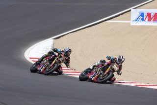In the King of the Baggers class, O’Hara rode with typical zeal and courage as he battled to capture his first win of the season. O’Hara made a daring pass through the corkscrew on the last lap, only to lose control on the final turn. Despite going down, O’Hara rushed up, picked up the 620-pound motorcycle and was able to salvage a fourth-place finish. O’Hara again finished fourth in Race 2, while McWilliams took P5.