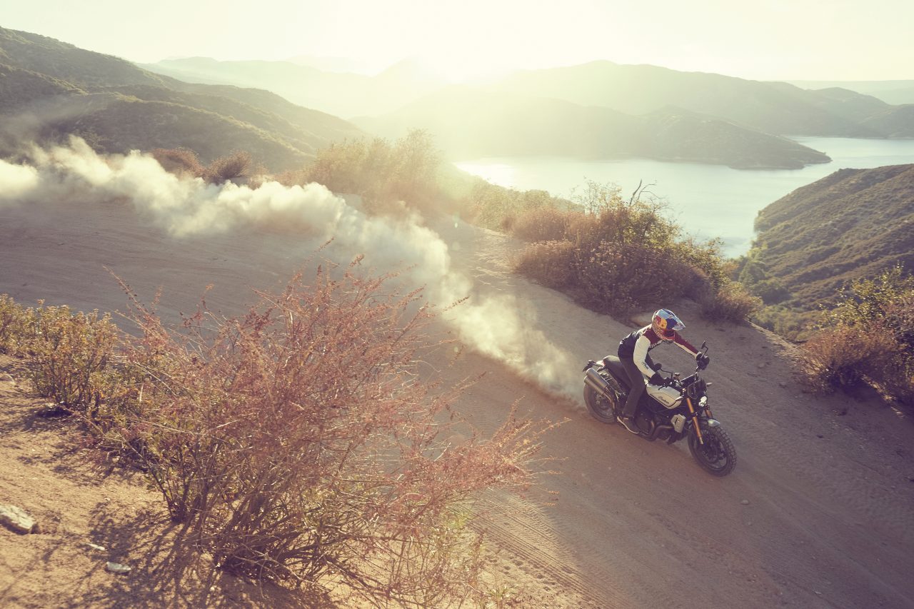 The Rally collection draws inspiration from lonely camp sites traversed on forgotten forest roads. Riders will immediately notice sturdy aluminium spoked wheels and a high-mount Akrapovič exhaust on the Rally collection. A unique seat, mudguards, tank covers, windscreen, Rally Handlebar by ProTaper, and a high-mount license plate holder round out the Rally collection. The configuration allows the FTR 1200 to take full advantage of the bike’s 150 mm of suspension travel.