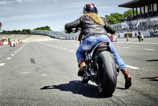Taking place on the Autodrome Linas-Montlhéry in front of thousands attending the Café Racer Festival, Katja Poensgen, the popular and well-liked German motorcycle racer showed she can cut it in sprint racing too.