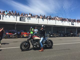 Taking place on the Autodrome Linas-Montlhéry in front of thousands attending the Café Racer Festival, Katja Poensgen, the popular and well-liked German motorcycle racer showed she can cut it in sprint racing too.