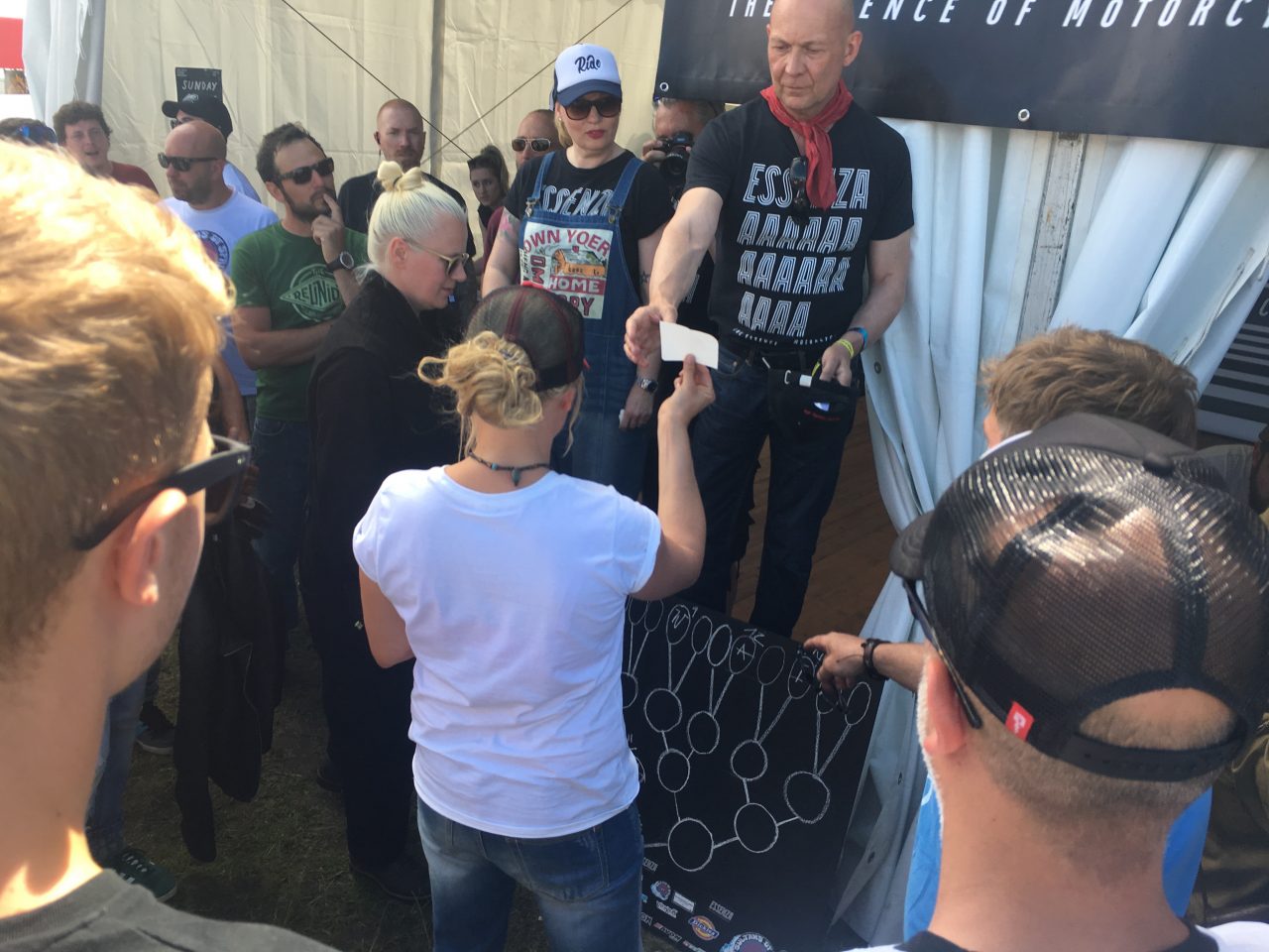 A draw was held on Sunday morning to decide the first set of races and Katja found herself with the number 13 (unlucky for some) and up against Mai Lin Senf, another female German racer on a Yamaha XV950 called ‘Dragger’.