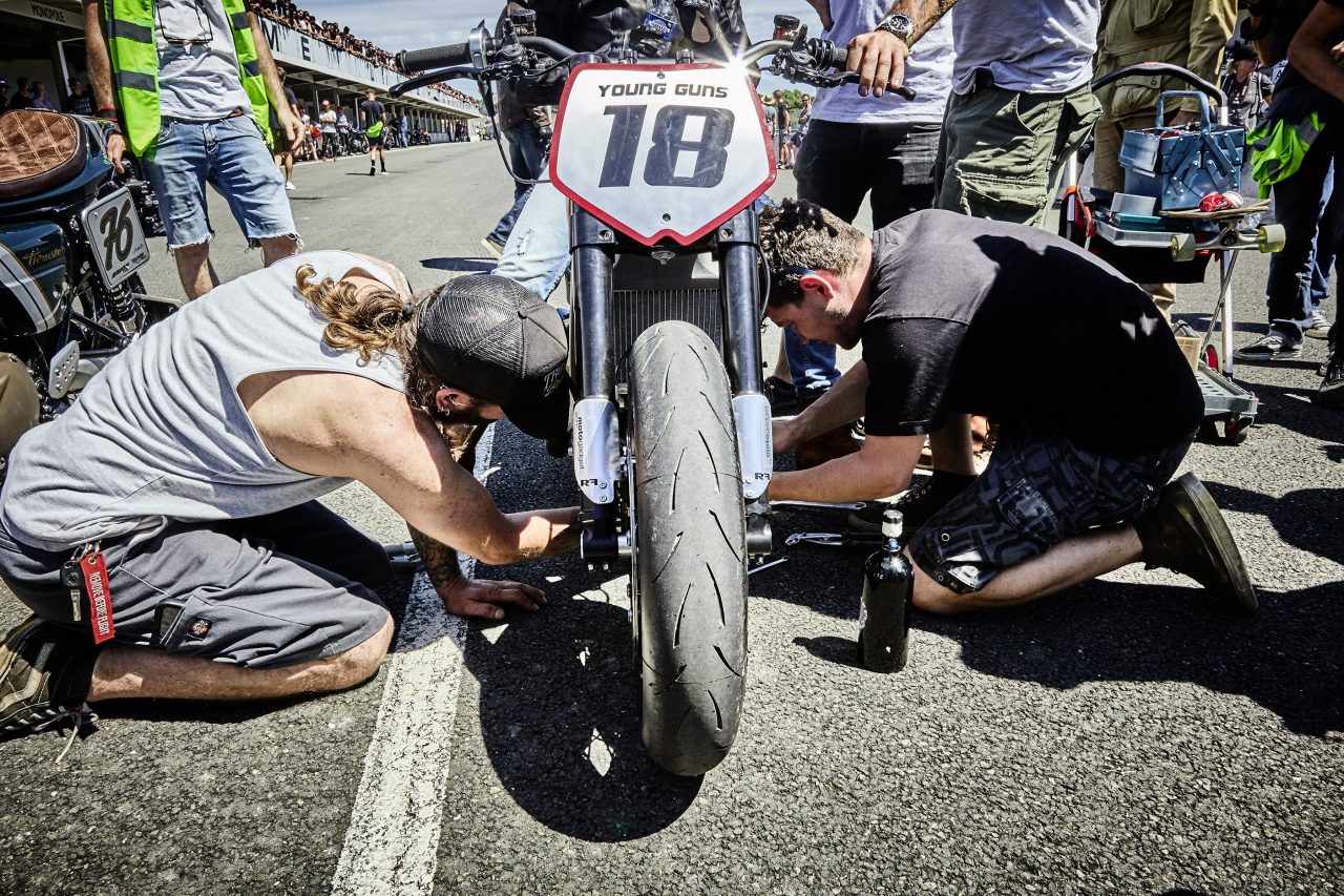 Going in to the race, the Young Guns knew their Indian Scout had serious power; Nik and Fabian had trimmed 48kg off the Scout’s 245kg weight to bring it down to 197kg and in dyno testing at Polaris Swissauto they saw a steady 185HP after two days of fettling and tweaking.