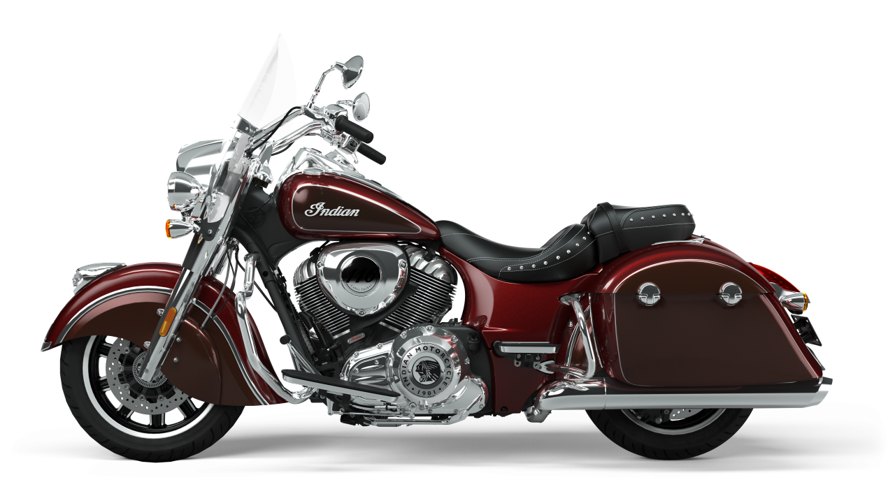 Pure and classic styling define the Indian Springfield. Standard with ride modes and rear cylinder deactivation, the Indian Springfield maintains rider-favourite features such as the quick release windshield, genuine leather seats, remote-locking saddlebags and adjustable passenger floorboards.