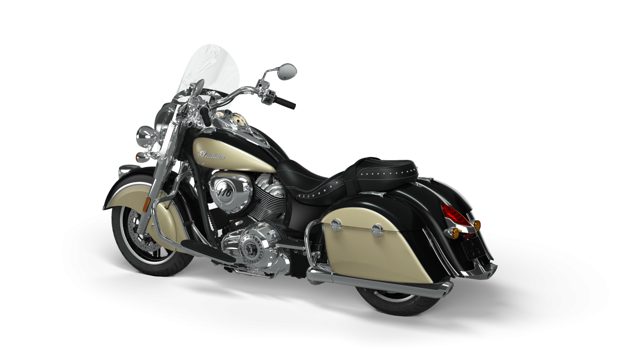 Pure and classic styling define the Indian Springfield. Standard with ride modes and rear cylinder deactivation, the Indian Springfield maintains rider-favourite features such as the quick release windshield, genuine leather seats, remote-locking saddlebags and adjustable passenger floorboards.
