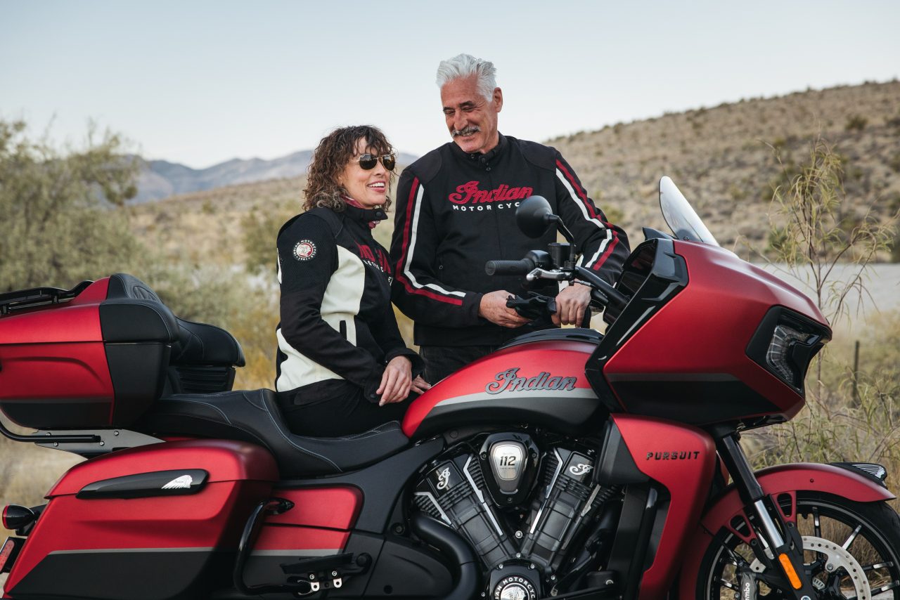 For touring riders, the Indian Pursuit offers convenient electronically adjustable rear suspension preload allowing riders to seamlessly adjust settings, when packing for the long haul or riding two-up, via the RIDE COMMAND screen. A stitched ClimaCommand Heated and Cooled Seat and Heated Grips are a luxury that spoil riders when in extreme weather conditions. The ClimaCommand Seat offers adjustable heating and cooling for both rider and passenger via integrated buttons with haptics or via the in-dash display powered by RIDE COMMAND.