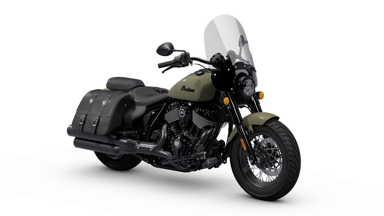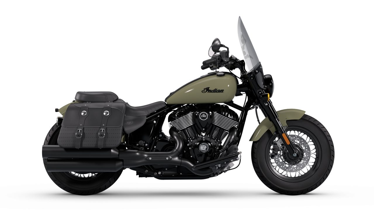 Designed with rider comfort in mind, the Super Chief Dark Horse distinguishes itself with a quick-release windscreen, black leather saddlebags, a touring seat with a passenger pad, floorboards, and traditional cruiser handlebars. The Super Chief Dark Horse is equipped with 16-inch (40.6 cm) wire wheels, a generous headlight bucket with a nacelle, fork covers, and a full blacked-out engine and exhaust, delivering a high-quality fit and finish. Powering all premium Chief models is Indian Motorcycle’s Thunderstroke 116 (1890cc) engine, providing a substantial 156 Nm of torque.